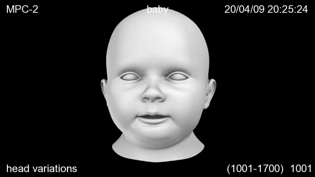 This is a turntable of seven babyheads. They were used for the "Evian"-commercial for babies in the background. The variations are modelled using the same base-geometry and therefore can be blended together to create more variations.